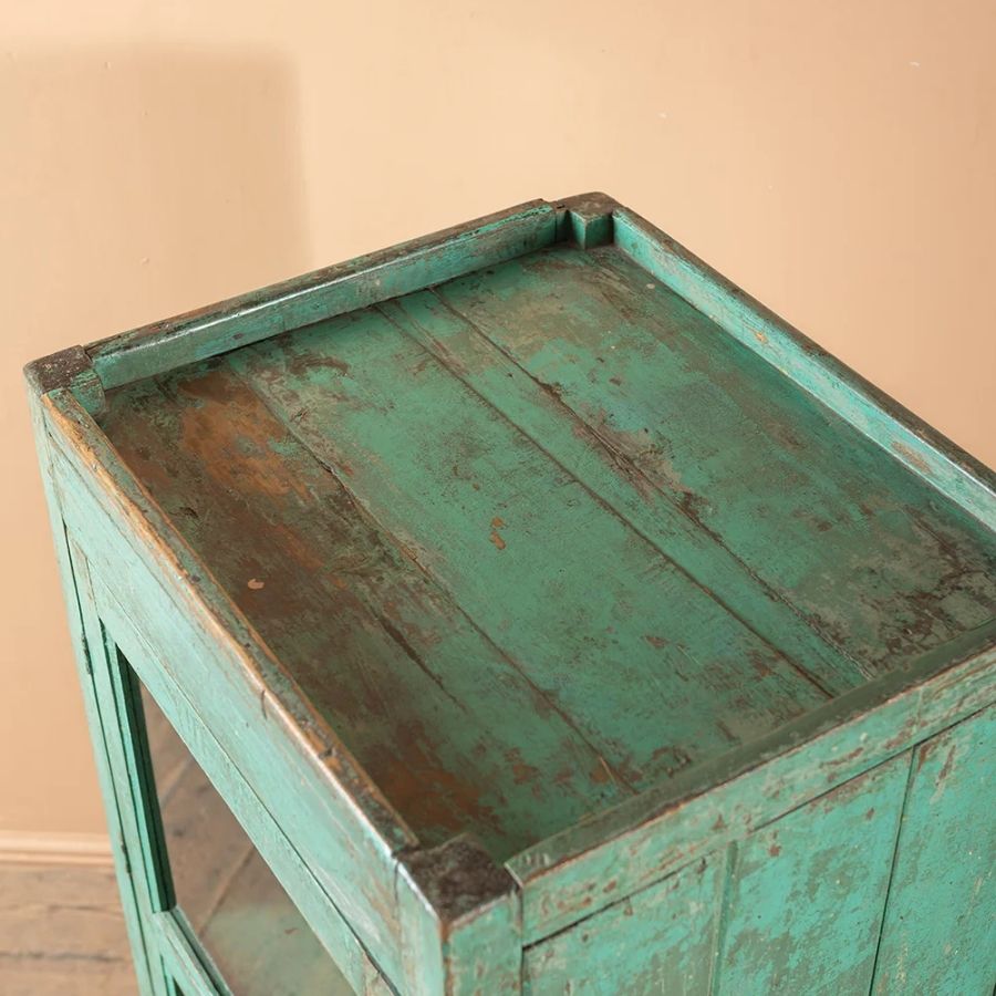 Turquoise Vintage Wooden Side Cabinet with Glass Door