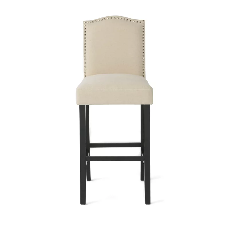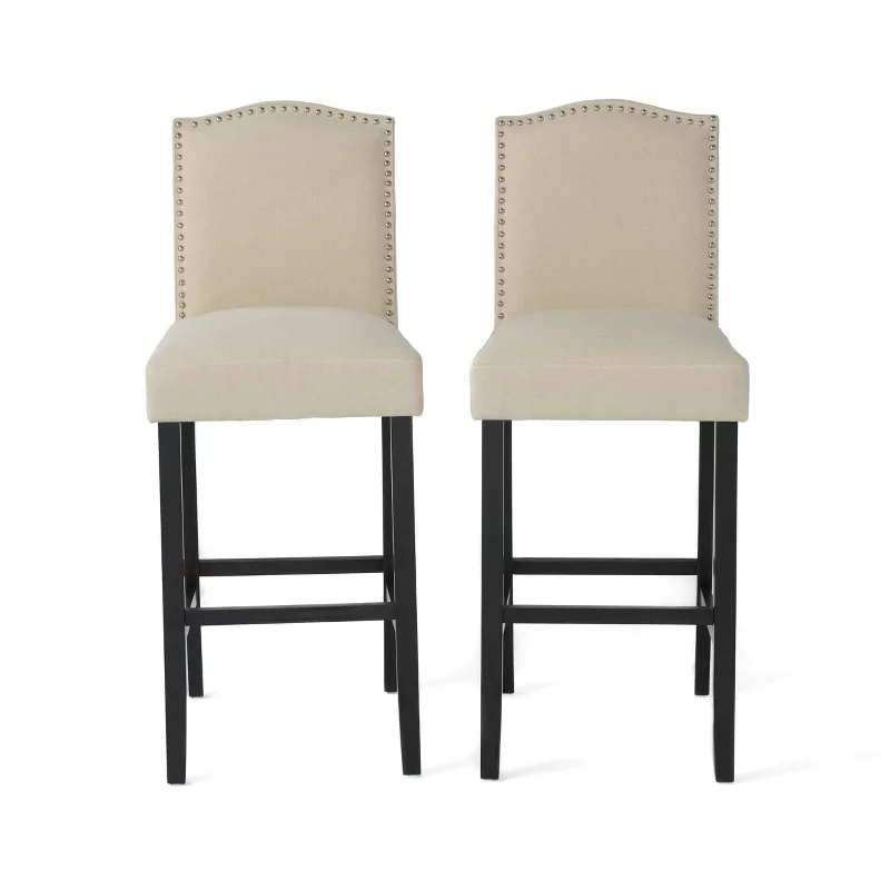 Upholstered Bar Stools with Nailhead Trim & Arched Back – Set of 2, Classic Design