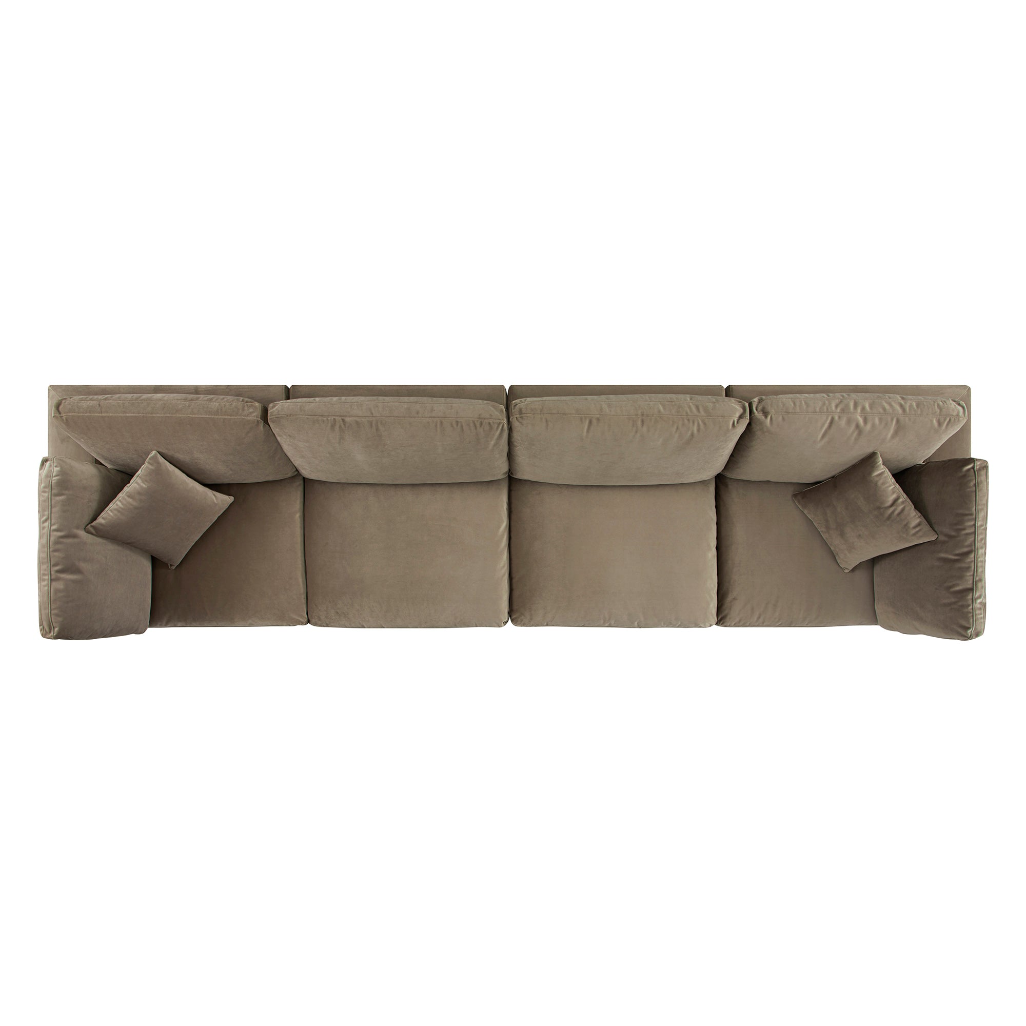 Its modular design allows you to rearrange the four pieces to suit your space, whether you want an open conversational layout, a compact corner arrangement or a stretched lounge-style setup. Deep seating and plush, high-resilience cushioning ensure long-lasting comfort during movie nights, relaxed evenings or family gatherings.