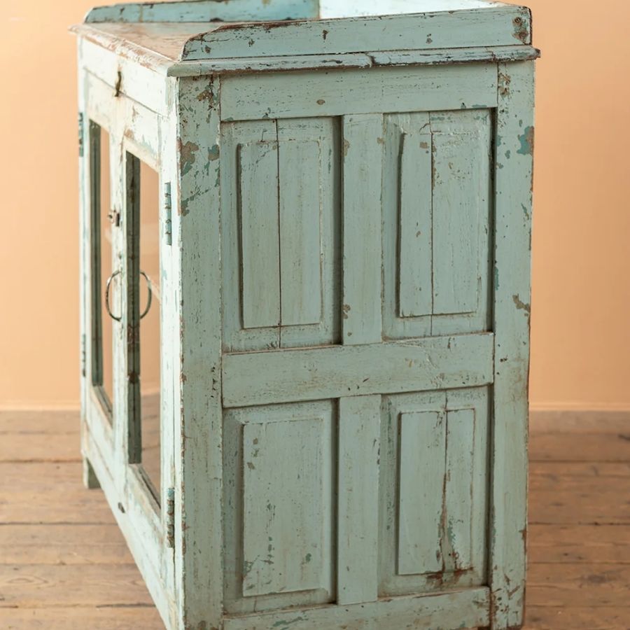 Soft Vintage Finish – Distressed pale blue paint inside and out