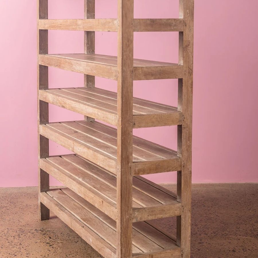 Vintage Wooden Shelving Unit with Six Slatted Shelves