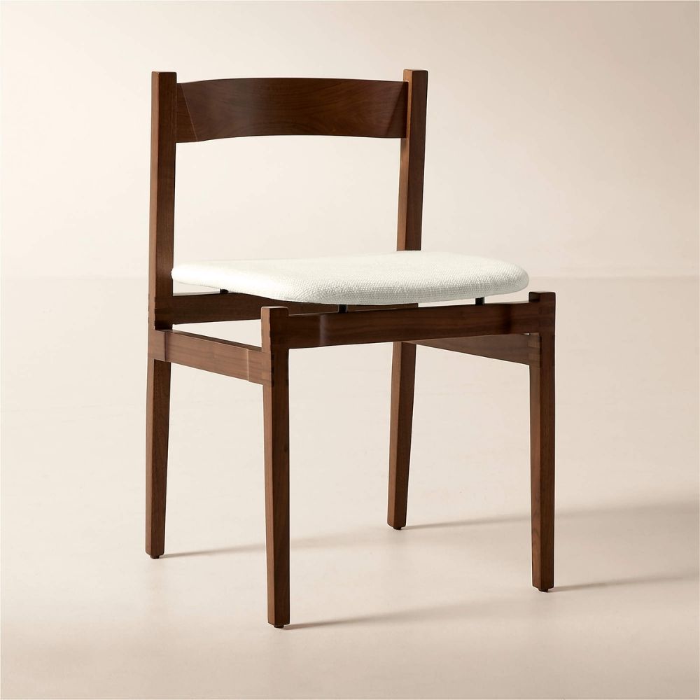 Walnut Wood and White Upholstered Dining Chair