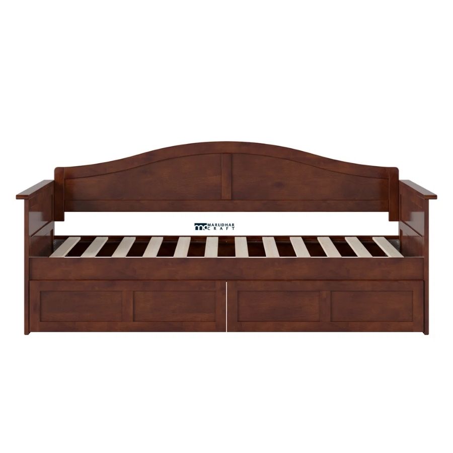 Warm Walnut Wooden Daybed with Storage Drawers