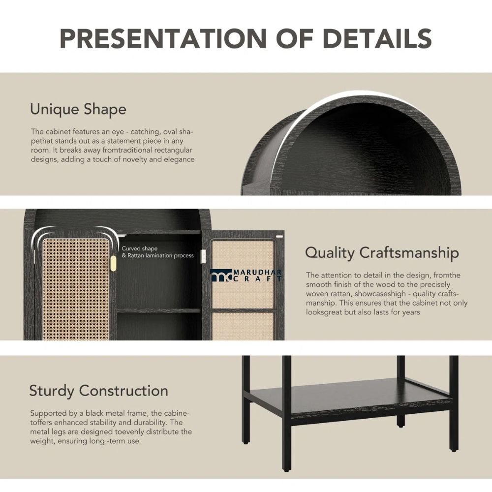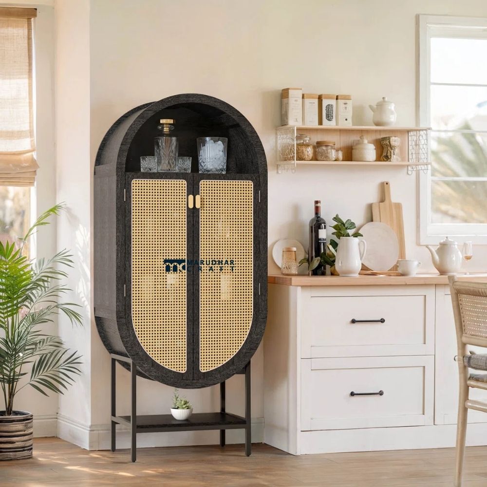 Add natural texture and elegant storage to your home with this wine cabinet featuring a rattan door, designed to suit Indian interiors. The woven rattan detailing brings a warm and earthy charm, while the cabinet offers organised space for wine bottles and bar essentials. Its compact and stylish design makes it suitable for living rooms, dining areas, or home bar setups. Built for durability and everyday use, this cabinet combines functionality with a relaxed, contemporary look.