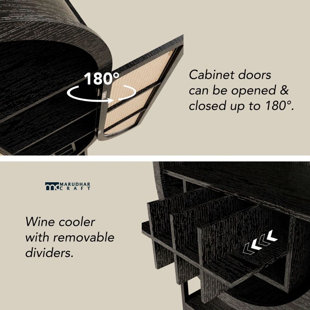 Wine Cabinet with Rattan Door and Storage for Living Room and Dining Area