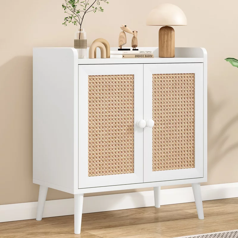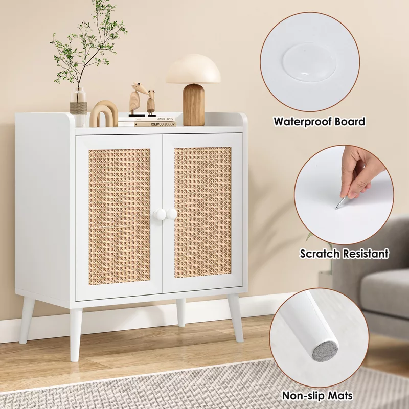 • Natural Rattan Doors: Adds a stylish, organic look while keeping contents concealed