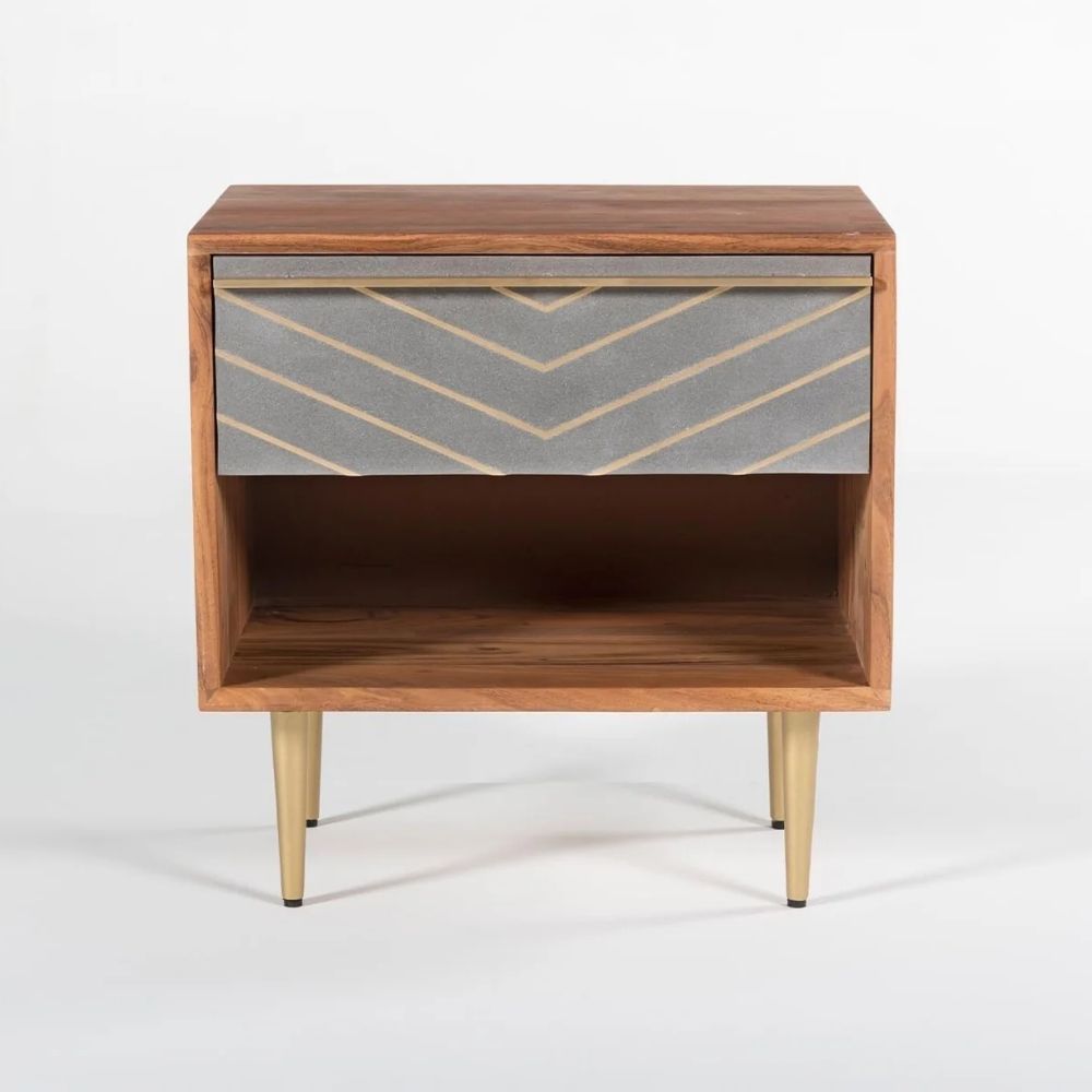 • Material: Acacia wood, iron, and cement with inlay