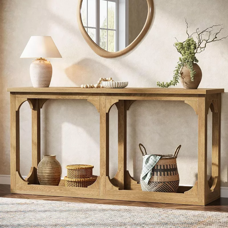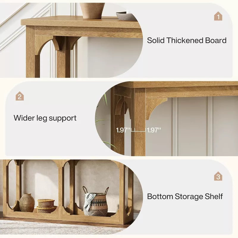 Enhance your home with this Wooden Console Table with Storage, designed to offer both style and practicality. Crafted entirely from wood, this console table provides durability and a timeless look that complements a variety of interior styles. The spacious tabletop and built-in storage make it ideal for organizing everyday essentials, while the sturdy wood legs ensure long-lasting stability. Perfect for entryways, hallways, or living rooms, this table blends function with classic appeal.