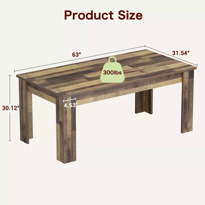 Spacious Rectangular Design – 63″ long tabletop comfortably seats 4–6 people