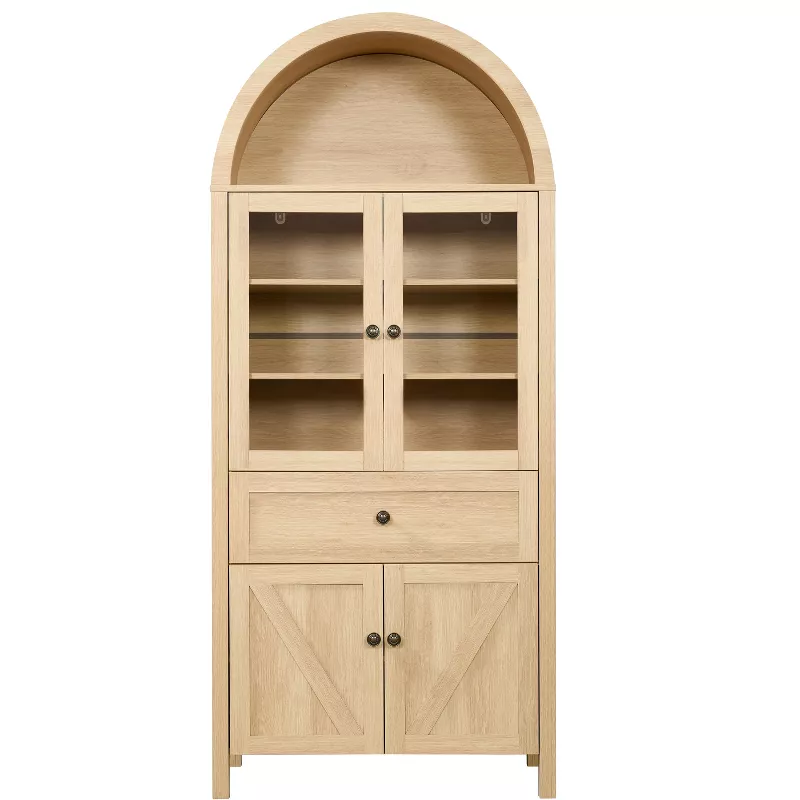 This tall wooden sideboard offers a versatile storage solution with a combination of drawers, open shelves, and enclosed compartments. Crafted from durable wood composite with a melamine surface, it is designed to maximize vertical storage while maintaining a clean, modern appearance. Ideal for dining rooms, living spaces, or kitchens, this cabinet includes adjustable shelving and anti-tip anchoring hardware for added safety and stability.