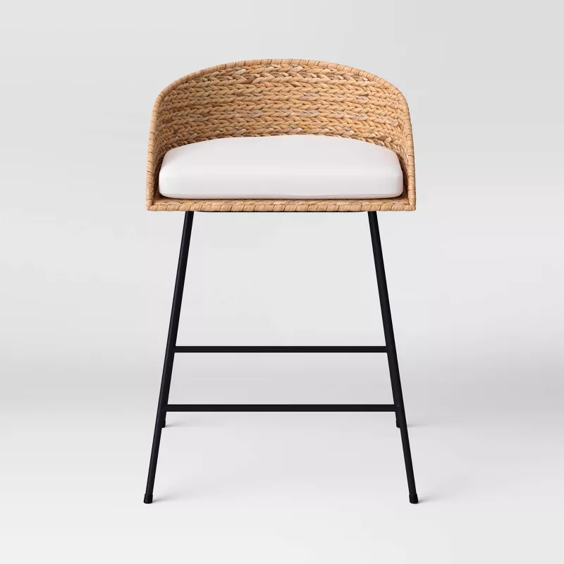 Woven Back Counter Height Barstool with Cushion – Sturdy Metal Frame Design