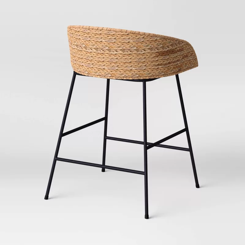 Enhance your kitchen or dining space with this Woven Back Counter Height Barstool. Designed with a durable metal frame and a stylish woven backrest, this barstool offers both comfort and modern appeal. The cushioned seat provides added support for everyday seating, while its counter-height design makes it ideal for kitchen counters and breakfast bars. A perfect balance of style, comfort, and durability.