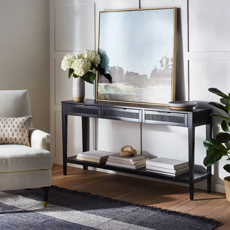 Woven Drawer Console Table for Entryway and Living Room