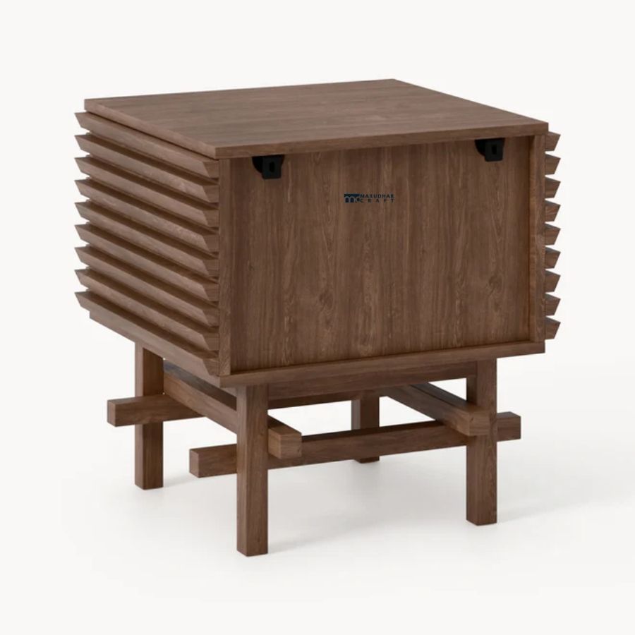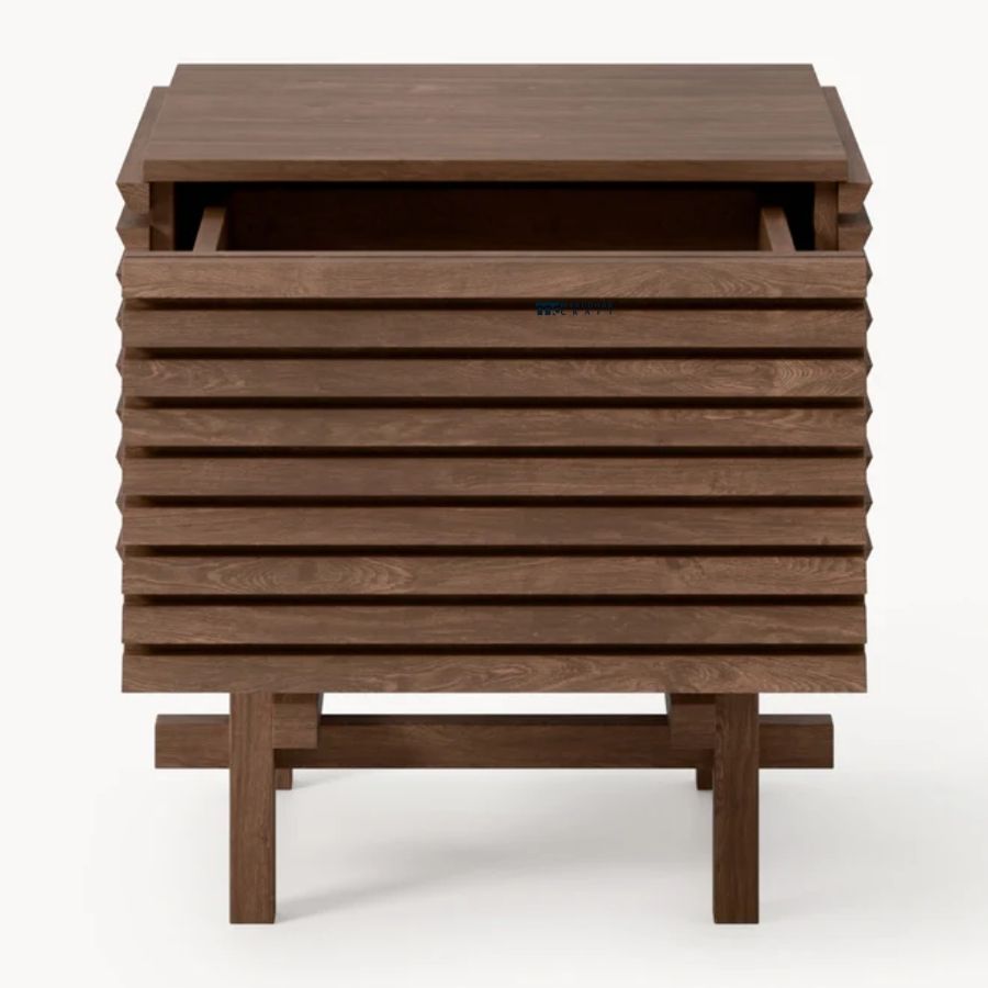 Transform your bedside with the Zenith Slatted Nightstand, a masterpiece of Japandi-inspired design. Crafted from premium solid wood, this piece features a striking horizontal slatted facade that creates a rhythmic play of light and shadow. Its architectural base provides a light, airy feel, while the rich natural grain adds organic warmth to any modern or minimalist bedroom.